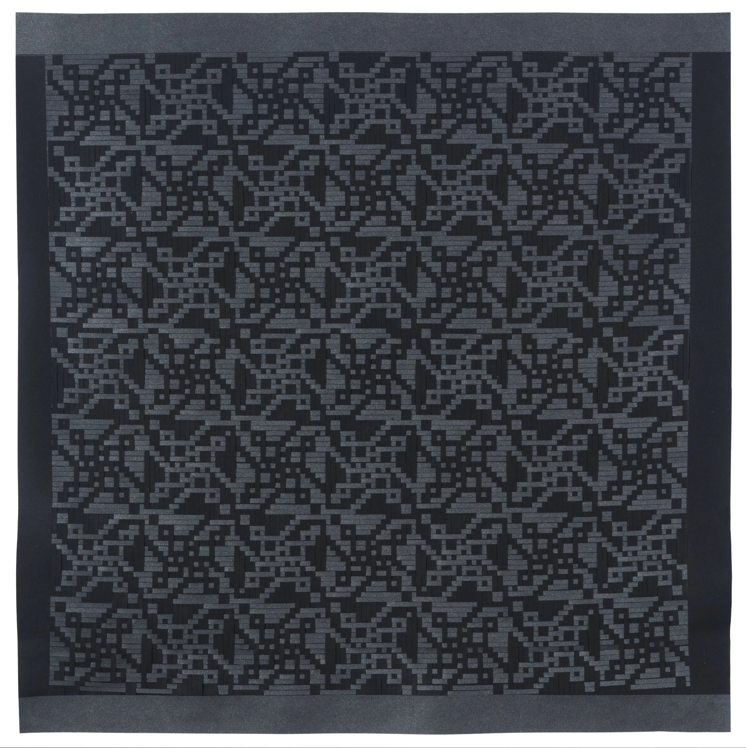 2021, screeprinted paper & black tyvek paper weaving,